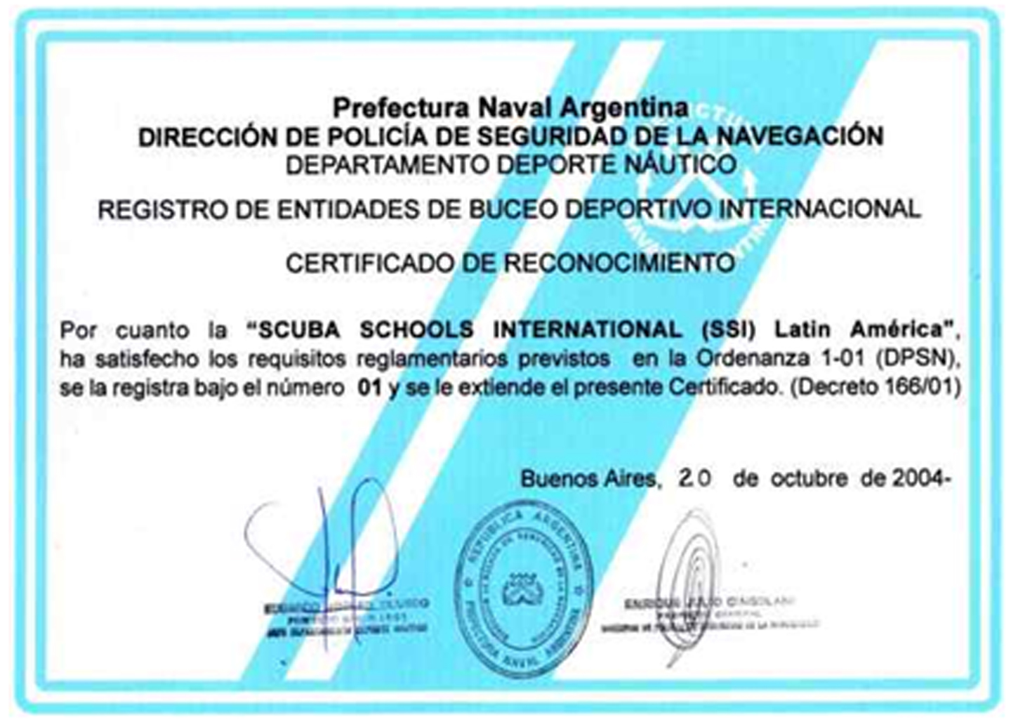 Esta clasificación de centro de carácter internacional, brinda la posibilidad de otorgar certificaciones en todos los niveles del buceo recreativo.